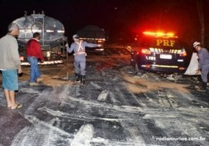 Motoristas precisam ficar atentos ao transitarem pelas vias BR 116 e 356 em Muriaé. Na madrugada de hoje(4), uma grande carga de margarina tombou de um caminhão e se espalhou