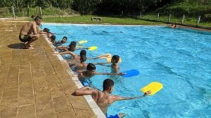 Aulas de natação e futsal são ofertadas para estudantes de escola pública