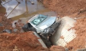 Carro cai em ribanceira na estrada que liga a Ponte Nova