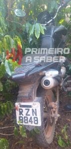 Na tarde dessa terça (03), por volta das 16h30, uma motocicleta foi recuperada no Lugarejo PRM, em Canaã. A Polícia Militar recebeu uma denúncia anônima informando que uma motocicleta estava