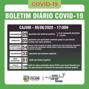 Chega a nove o número de casos de COVID-19 em Cajuri