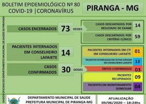 A Prefeitura Municipal de Piranga por meio do Departamento Municipal de Saúde – Setor de Vigilância em Saúde informou nesta segunda-feira, 08/06 que foi confirmado mais um caso positivo para