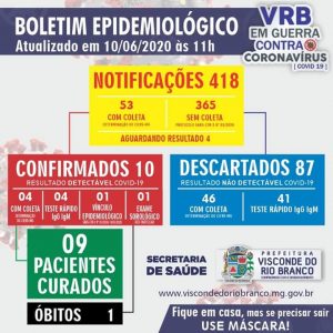 Visconde do Rio Branco registra 10 casos confirmados de coronavírus