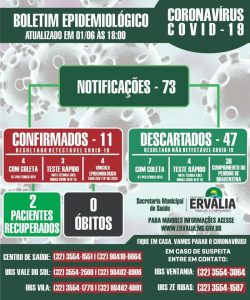 Na noite dessa quinta-feira (28), por volta das 18h, a Prefeitura de Viçosa divulgou o novo boletim epidemiológico. Na cidade, há 135 casos investigados, estando 133 pacientes em isolamento domiciliar,