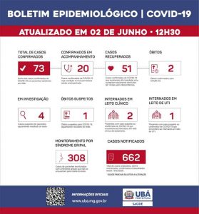 Ubá registra 70 casos confirmados e 2 óbitos por covid-19