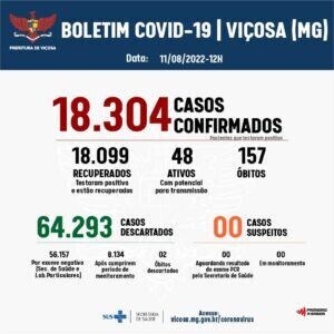 Com os novos casos de Covid-19 confirmados, Viçosa já tem 18.304 diagnósticos positivos desde o início da pandemia. A Vigilância Epidemiológica divulga o 701º Boletim Epidemiológico de Covid-19, desta quinta-feira,