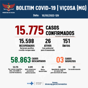 Viçosa registrou mais 15 casos de Covid-19 nas últimas 24h
