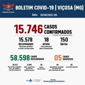 Viçosa registrou um novo caso de Covid-19 nas últimas 24h