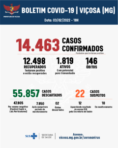 Viçosa registra 126 casos confirmados de coronavírus no boletim de quinta 3/2