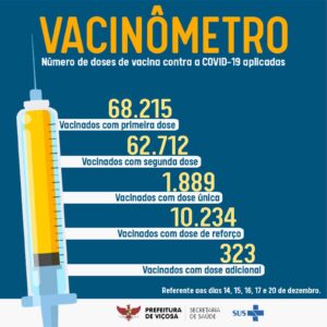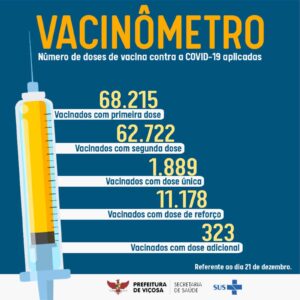 O Setor de Atenção Primária em Imunizações, da Secretaria Municipal de Saúde, atualiza os dados da vacinação contra a Covid-19, referentes ao dia 21 de dezembro. Em Viçosa, já são