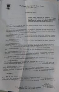 Prefeitura de Porto Firme publica decreto com novas medidas de restrição e combate à pandemia
