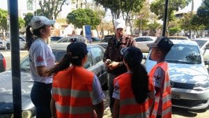 Os Agentes Mirins do Programa de Educação no Trânsito (PETRA) da Diretoria de Trânsito, ligada à Superintendência de Gestão Pública e Governança, estiveram nas ruas fiscalizando o trânsito. Hoje pela