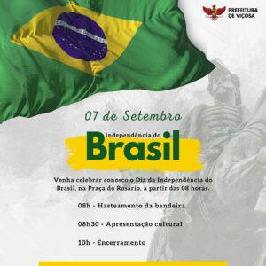Prefeitura de Viçosa define programação do dia 7 de Setembro, em comemoração aos 202 anos da independência do Brasil. Neste sábado (7), a Prefeitura Municipal de Viçosa vai celebrar o