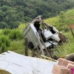 Motorista perde controle de direção de carreta e cai no Rio Muriaé na MGC-265