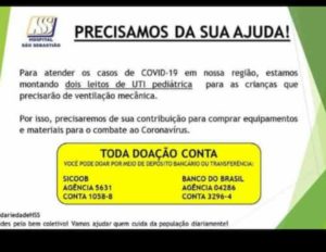 Para atender os casos de COVID-19, o Hospital São Sebastião (HSS), está montando dois leitos de UTI pediátrica para as crianças que precisarem de ventilação mecânica. Por isso, o hospital