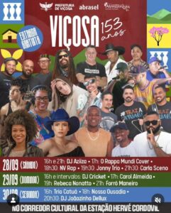 Diversos shows gratuitos serão realizados na Estação Hervé Cordovil Em 30 de setembro de 2024, comemoram-se os 153 anos de emancipação político-administrativa de Viçosa. Para celebrar a data, uma programação