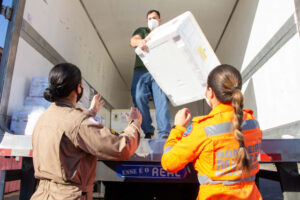 Nesta segunda-feira (11/10) o Governo de Minas, por meio da Secretaria de Estado de Saúde (SES-MG), recebeu mais 325.260 doses do imunizante Pfizer. As doses chegaram em dois desembarques no Aeroporto Internacional