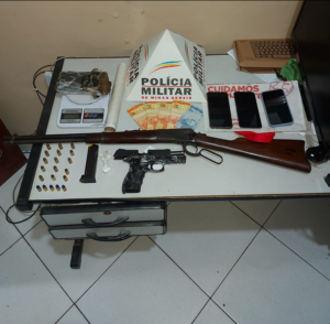 Foram apreendidas uma pistola, uma carabina, aparelhos celulares e drogas. O autor foi conduzido à Delegacia. No último sábado, 22, após denúncias, A Polícia Militar se deslocou ate a Zona