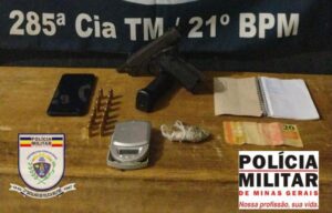 A Polícia Militar (PM) apreendeu drogas que estavam sendo usadas para o tráfico e uma arma de fogo em Tocantins, cidade próxima a Ubá. Os materiais estavam escondidos em um