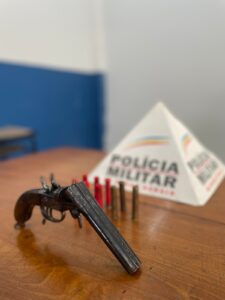 A PM abordou o cidadão em via pública e, com ele, encontrou uma arma de fogo. Além da garrucha de calibre .32, havia 2 munições de mesmo calibre. Após o