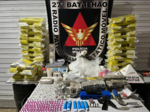 Além dos mais de 100 kg de maconha, a PM também apreendeu 7kg e 110 pinos de cocaína, além de 89 pedras de crack réplica de armas e munições. Um rapaz