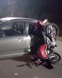 Um jovem de 22 anos ficou ferido na noite da última quarta-feira (14) após colidir sua motocicleta lateralmente com um carro na Avenida Maria de Paula Santana, bairro João Bras,