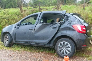 Carro sai da pista e desce ribanceira de aproximadamente 30 metros
