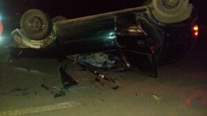 Uma colisão entre dois carros causou um capotamento na rodovia que liga Viçosa a Canaã na noite do último domingo (28). O Corpo de Bombeiros foi acionado por volta das