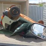 Carro capota após acidente entre Viçosa e Canaã
