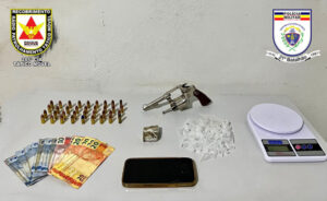 Na noite de sexta-feira (24/01), a Polícia Militar apreendeu um revólver, munições, drogas e uma granada no bairro Pires da Luz, em Ubá. A ação ocorreu durante o atendimento a