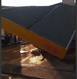 Carreta derruba pilastra em posto de gasolina, em Ervália