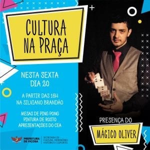 Nesta sexta (20), o Mágico Oliver estará presente no Cultura na Praça, que será realizado na Praça Silviano Brandão em Viçosa. O evento será a partir das 16h. Haverá mesas