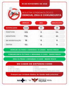 Viçosa registra 515 casos de dengue e mantém cenário de baixo risco para arboviroses