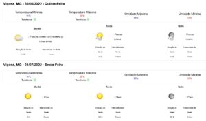Previsão do tempo para Viçosa e região nesta quinta-feira (20/10)