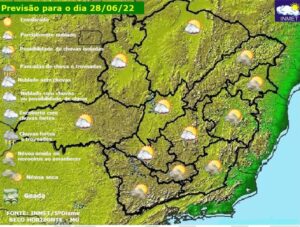 Boletim do Sistema de Meteorologia e Recursos Hídricos de Minas Gerais (Simge) – Belo Horizonte. Nesta segunda-feira (27/6), a previsão do tempo para Minas Gerais é de predomínio de sol