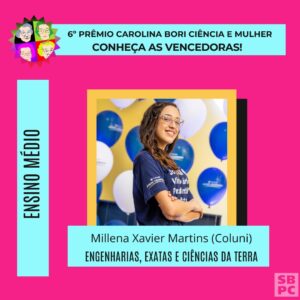 Ex-aluna do CAp-Coluni conquista Prêmio Carolina Bori Ciência & Mulher da Sociedade Brasileira para o Progresso da Ciência