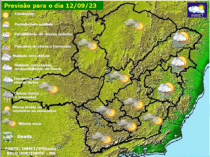 Quarta-feira com predomínio de sol, temperaturas em elevação e baixos índices de umidade em Minas Gerais. O predomínio de uma intensa massa de ar seco sobre grande parte do país,