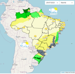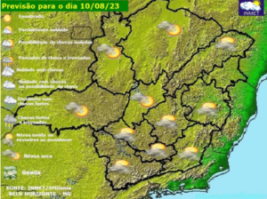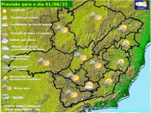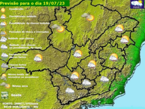 Terça-feira (25/7) com variação de nebulosidade e temperaturas estáveis em Minas Gerais. A tendência é de enfraquecimento do fluxo de umidade, restringindo a possibilidade de chuva para o leste e
